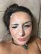 Милая девушка показывает свои лицо, которое обильно залито спермой.