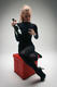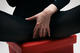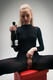 Девушка в чёрном с бутылкой вина