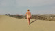 Привлекательно женщина по песчаным дюнам голышом гуляет!