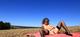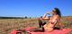 Девушка на поле, показывает себя