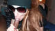 милая соска в темных очках и лыжной шапке сосет черный член
