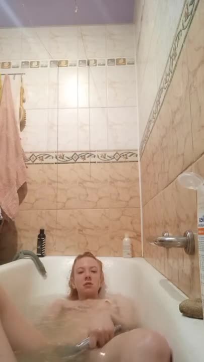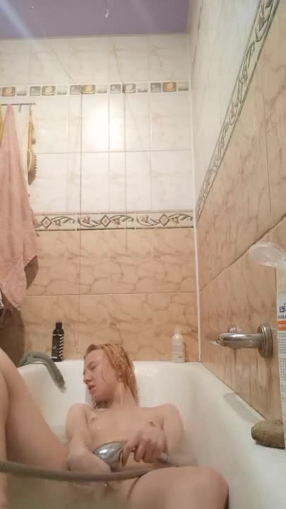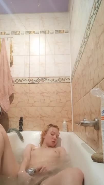 стройная блондиночка мастурбирует и кончает лёжа прямо в ванной
