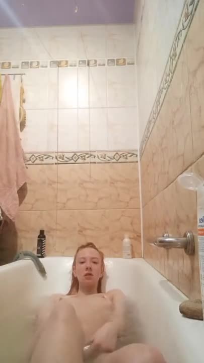 Блондинка лёжа в ванне кончает