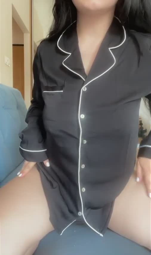 Решила с утра показаться в пижамной рубашке, которую сняла показывая свою грудь.
