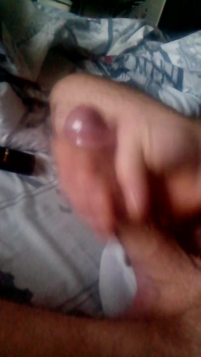 Знакомый расслабляется мастурбируя в постели...