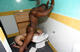 Нигер трахает в рот курящую блондинку в сортире