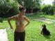 голая женщина играет с собакой