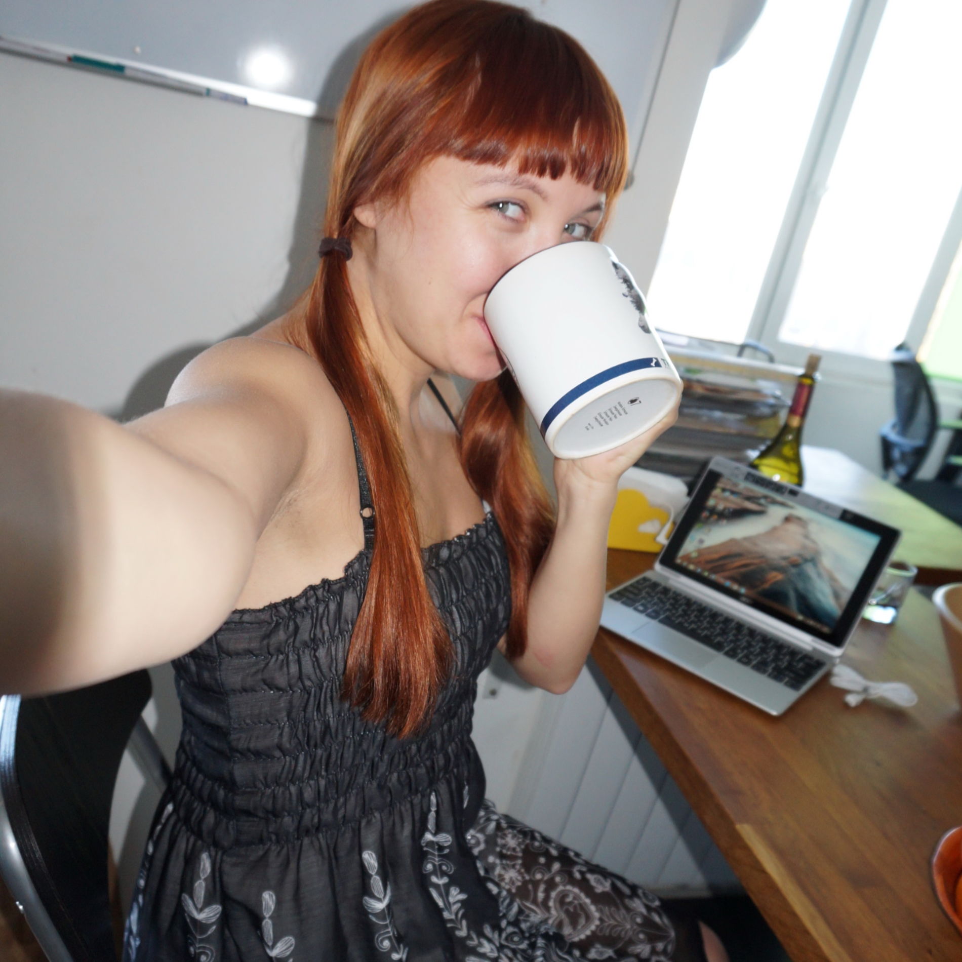 Уже и спокойно поесть не может. Всё селфи снимает.