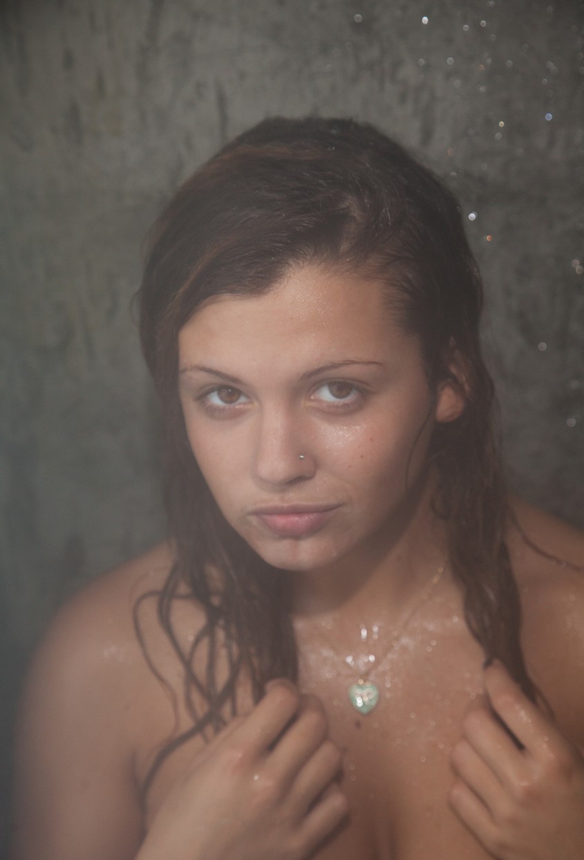 Сексуальная тинка позирует соло перед тем, как щеголять мокрыми сиськами в душе