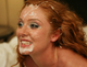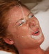 Много спермы на лице симпатичной и радостной рыжеволосой красотки.