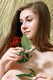 Прелестно сочетаются её розовые соски на груди и розовая роза!