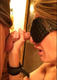 Стыдливая минетчица, отсасывает члены только в повязке на глазах