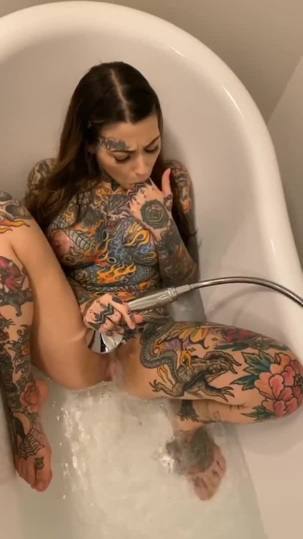Девушка думает что её тело это лист бумаги и дала нарисовать на себе всякую хрень. Что очень печально, т.к. у неё обалденная фигура.