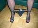 дама в чёрных чулочках спустила свои чёрные трусики продемонстрировав свою бритую киску.