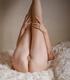 Девочка в черном корсаже прекрасно продемонстрировала себя на фоне белого покрывала. Все свои сладкие места показала в лучшем виде