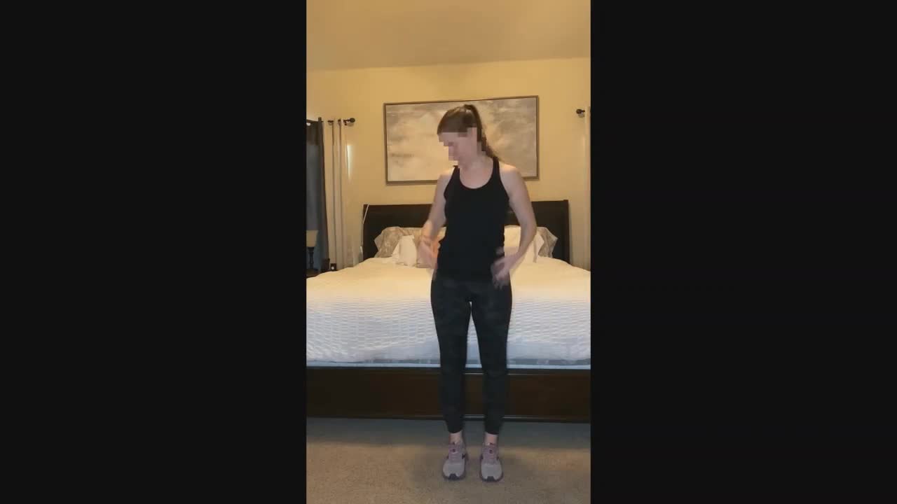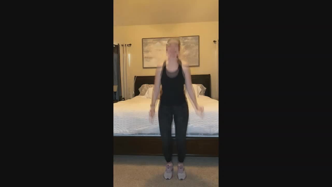 Креативная девушка с красивым телом смонтировала забавное видео, после каждого прыжка на ней остается все меньше одежды вплоть до полного раздевания.