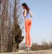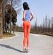 Сексуальная азиатская модель заманчиво позирует в красных прозрачных легинсах.
