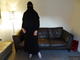 дама прикрылась паранджой и демонстрирует что там под ней.