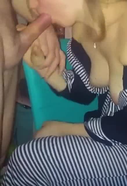 Девка в платье "матроске", отсосала на рабочем месте у своего друга, но тот после того как кончил ей в рот, бросил ее со своими сливками одну