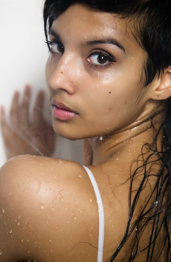 Шаная снимает мокрое платье и позирует обнаженной в ванной