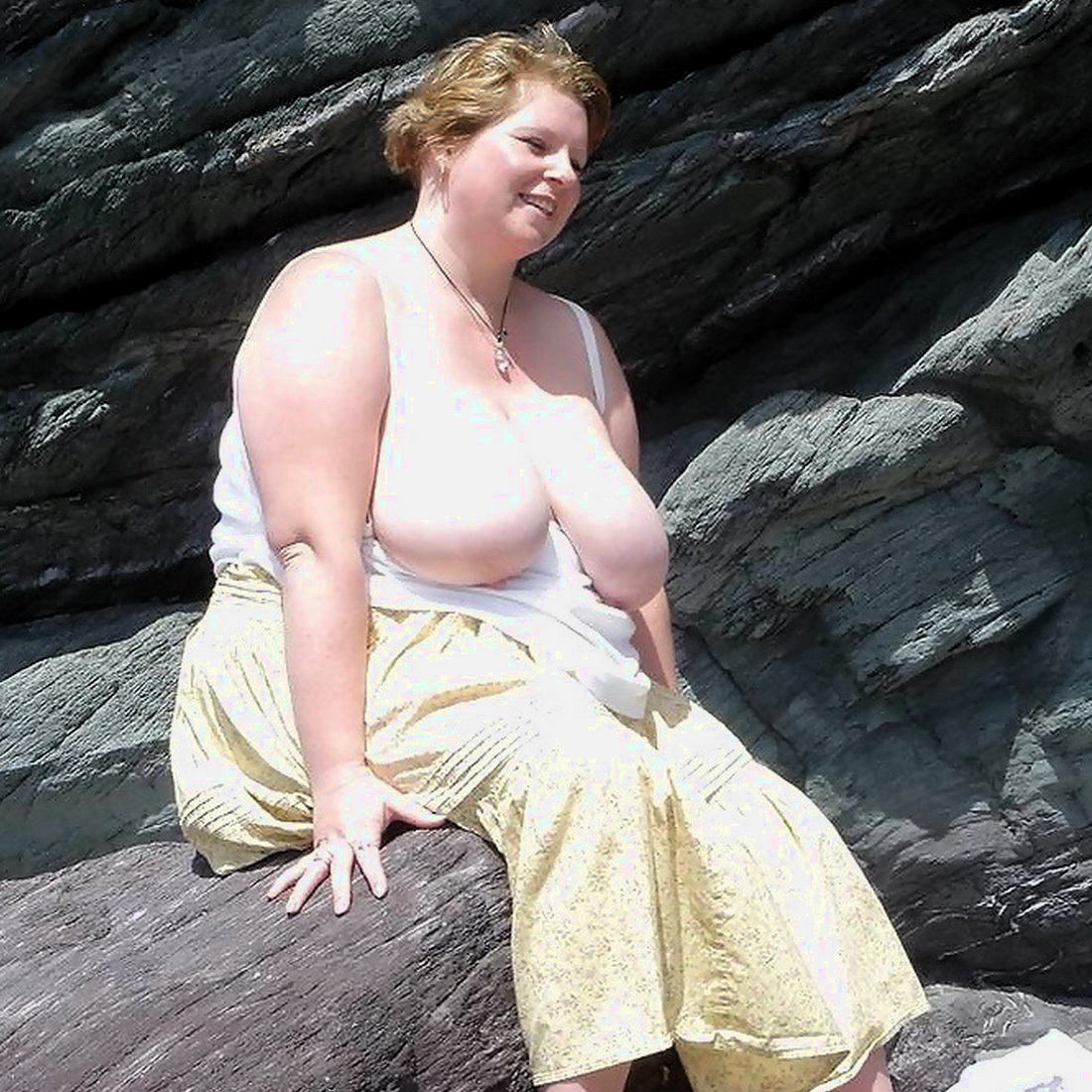 Плавает и загорает голой, но старается делать это, когда её не очень видно другим отдыхающим.