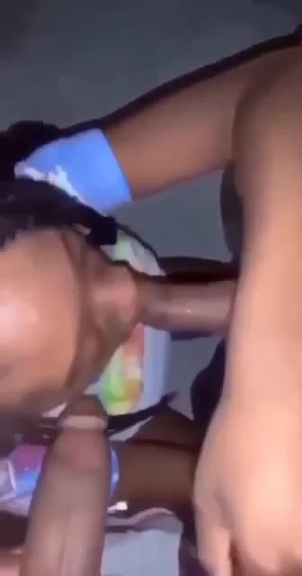 Стестнительная негритянка сосет член прикрывая лицо рукой а потом забивает и берет в рот второй