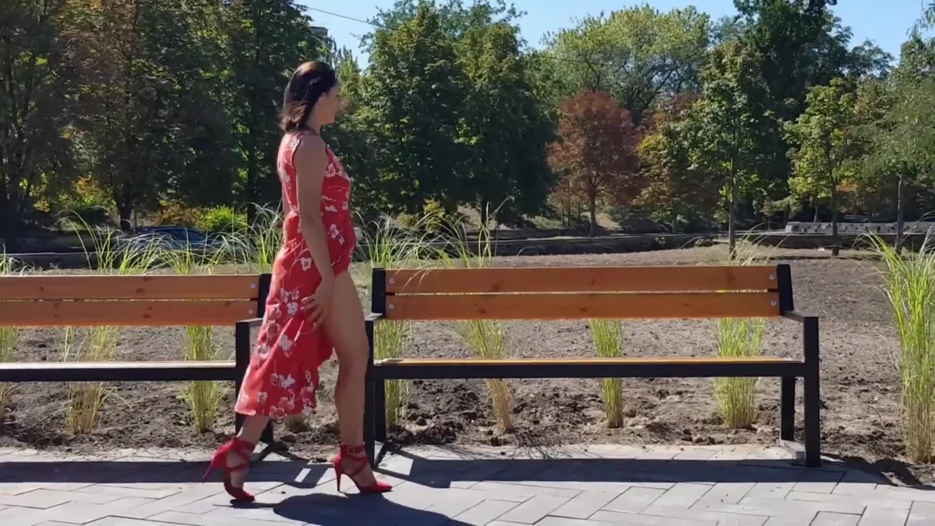 Стройная брюнетка Ирина из Украины проходит кастинг в одном из киевских парков