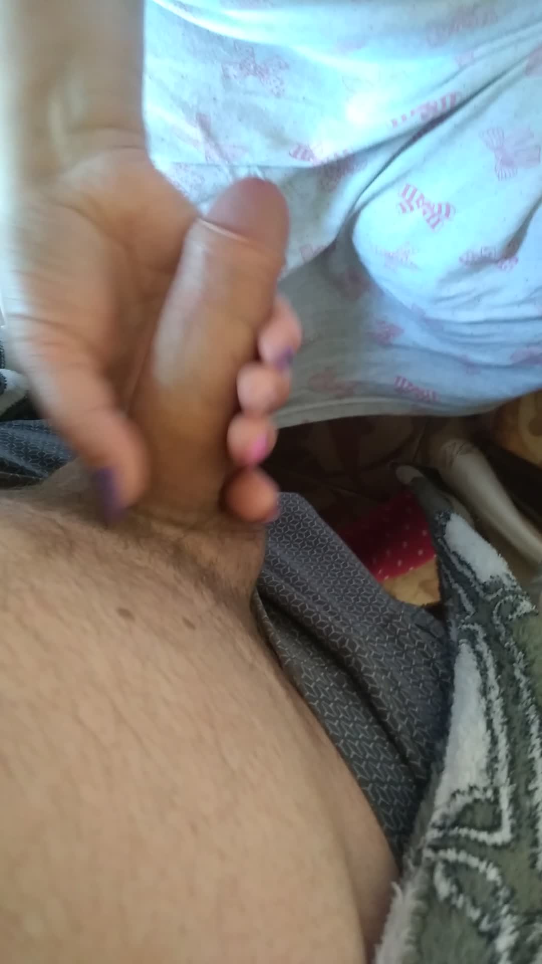 Жена играется с писюном.