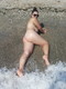 Сочная и загорелая женщина нежится голышом на морском песочке и ласковых волнах