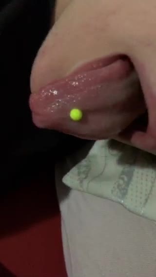 девушка с пирсингом на языке пососала член парню и получила на язычок спермочку