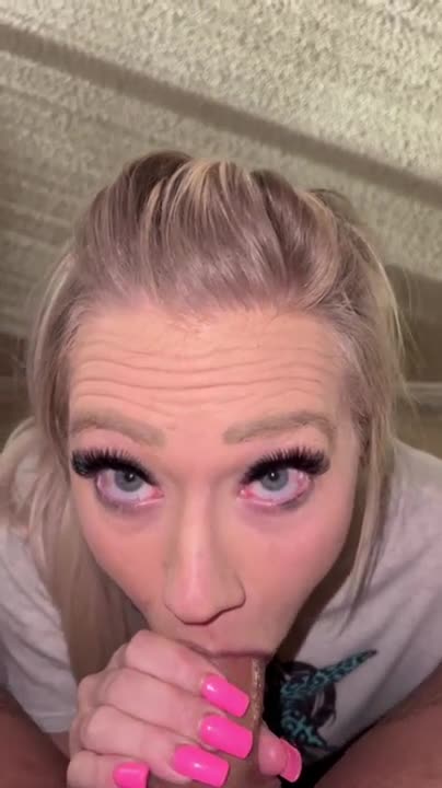 блондинка широко раскрыв глаза делает красиво минет парню