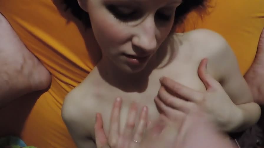 Парнишка дрочит на личико своей красивой девушки и заливает его спермой