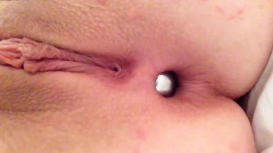 Красиво играется с шариком вставляя и доставая его из дырочки своей попки