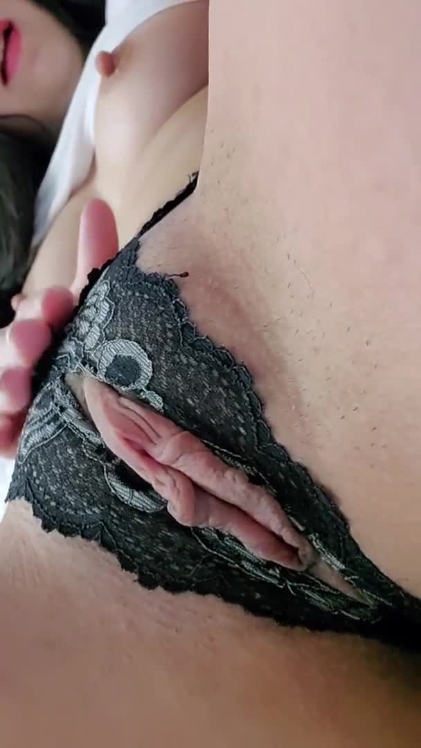 Очарован губастой вульвочкой девушки выглядывающей из её трусишек с разрезом!