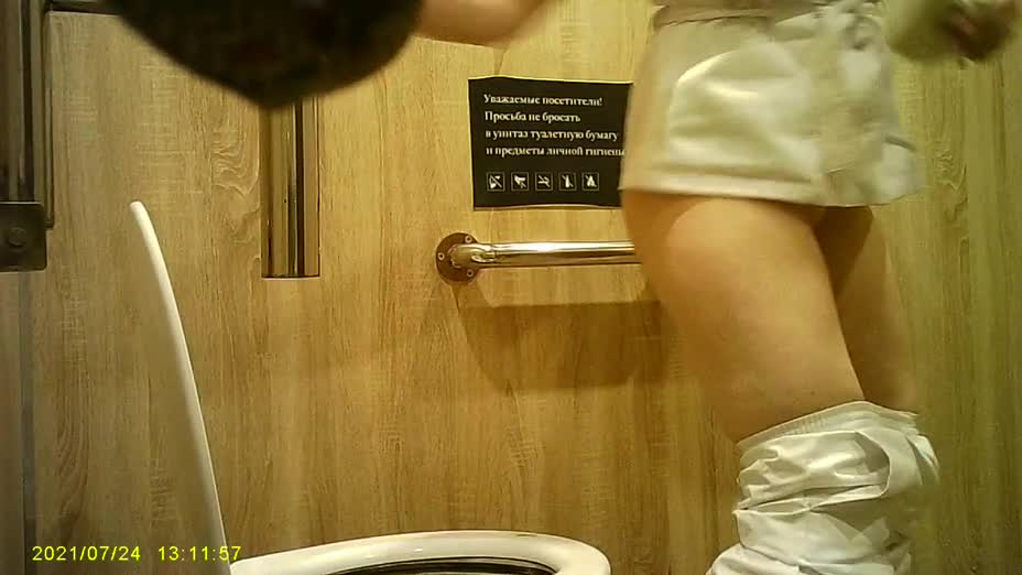 Женщина забежала в туалет по нужде, и попалась на скрытую камеру.