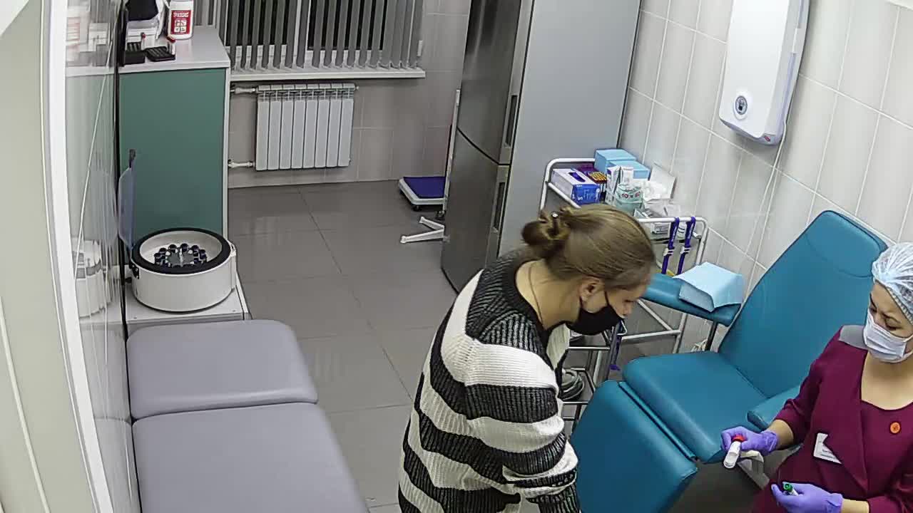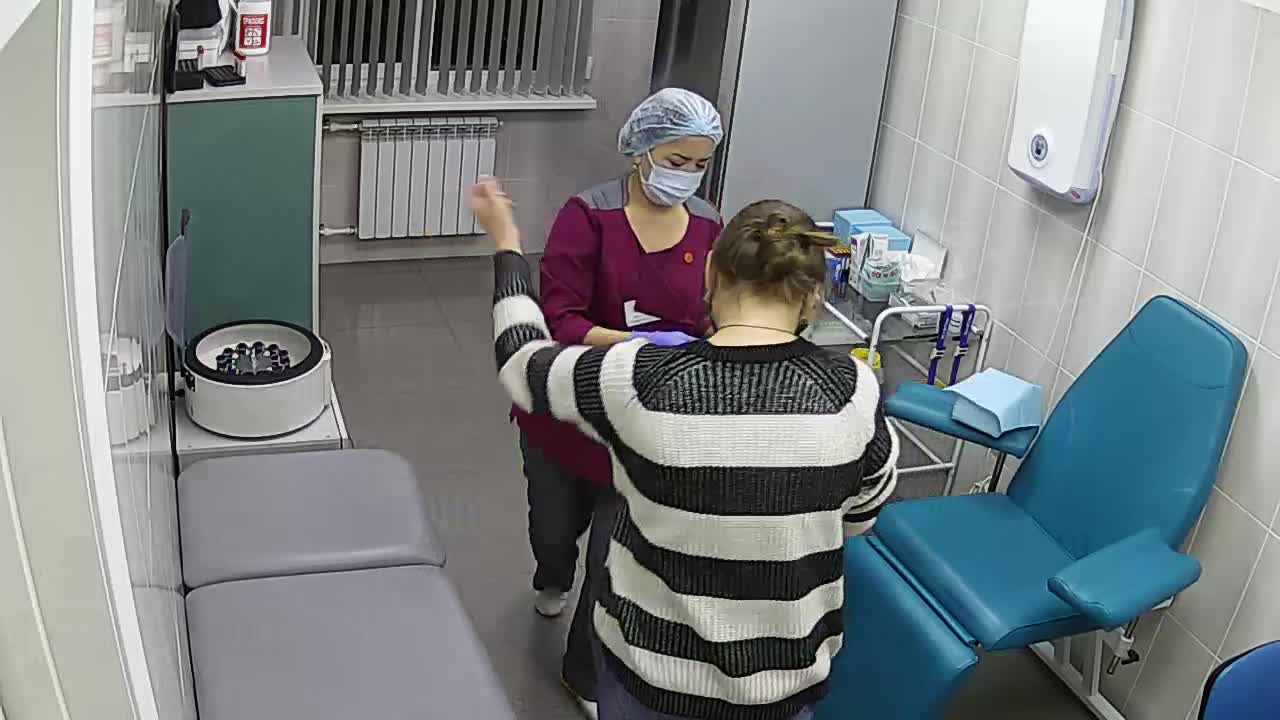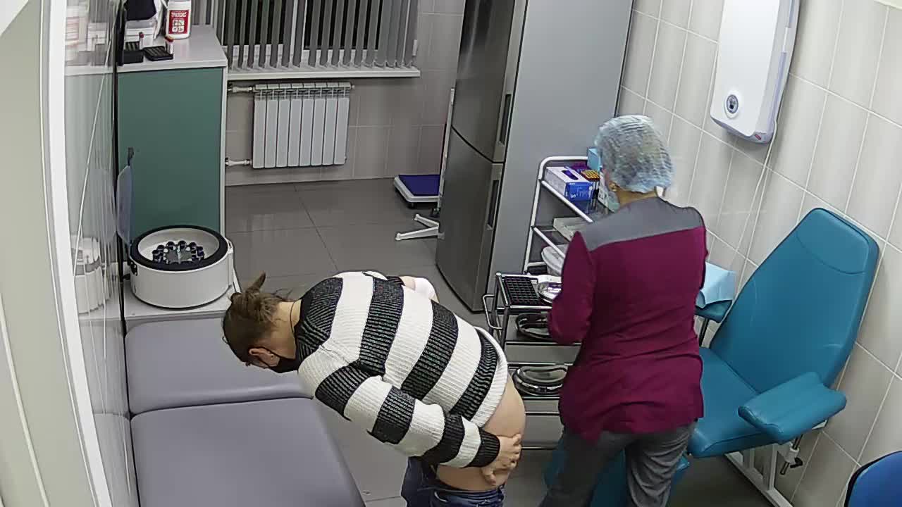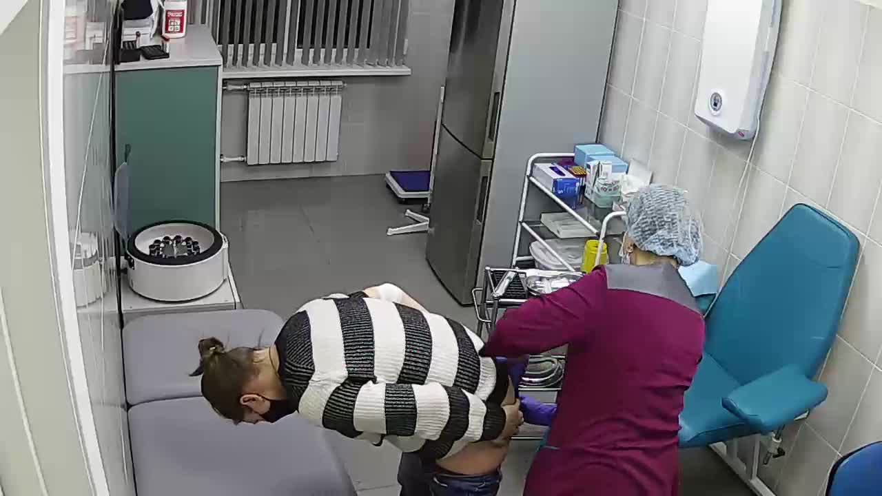 Скрытая камера из процедурного кабинета поликлиники снимает взятие бактериологического анализа из заднего прохода молодой девушки.Видео со звуком.