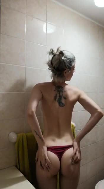 в красных трусиках показывает свою попку и тату на спине