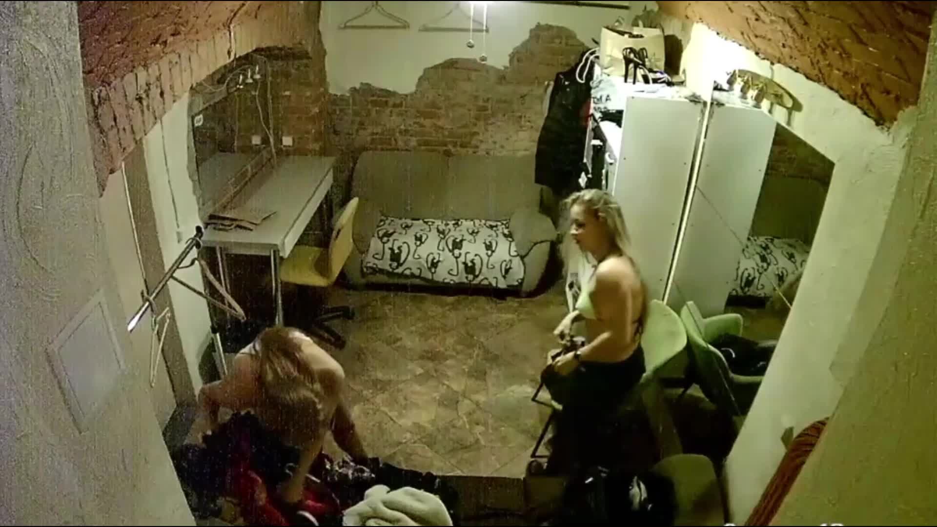 Интересно было посмотреть на двух весёлых девок в комнате переодевающихся!