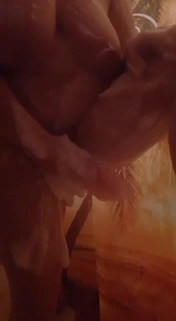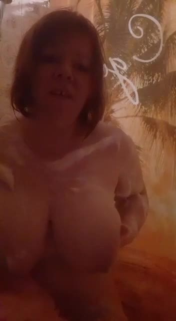 Тщательно намыливает свои большие сиськи, не забывает про писю, ласково намыливает свои половые губки, трёт свое красивое тело.