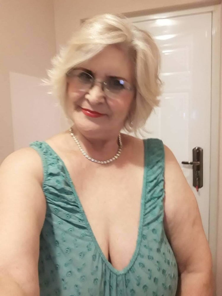 Элегантная пожилая дама показывает свои большие сиськи и все еще розовую киску