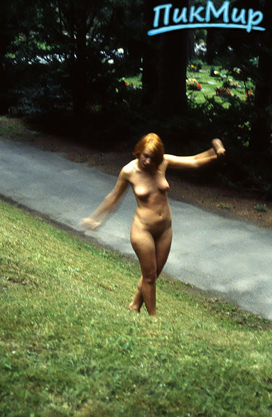 Совершенно голая рыжеволосая красотка гуляет по лесу и по хижине.