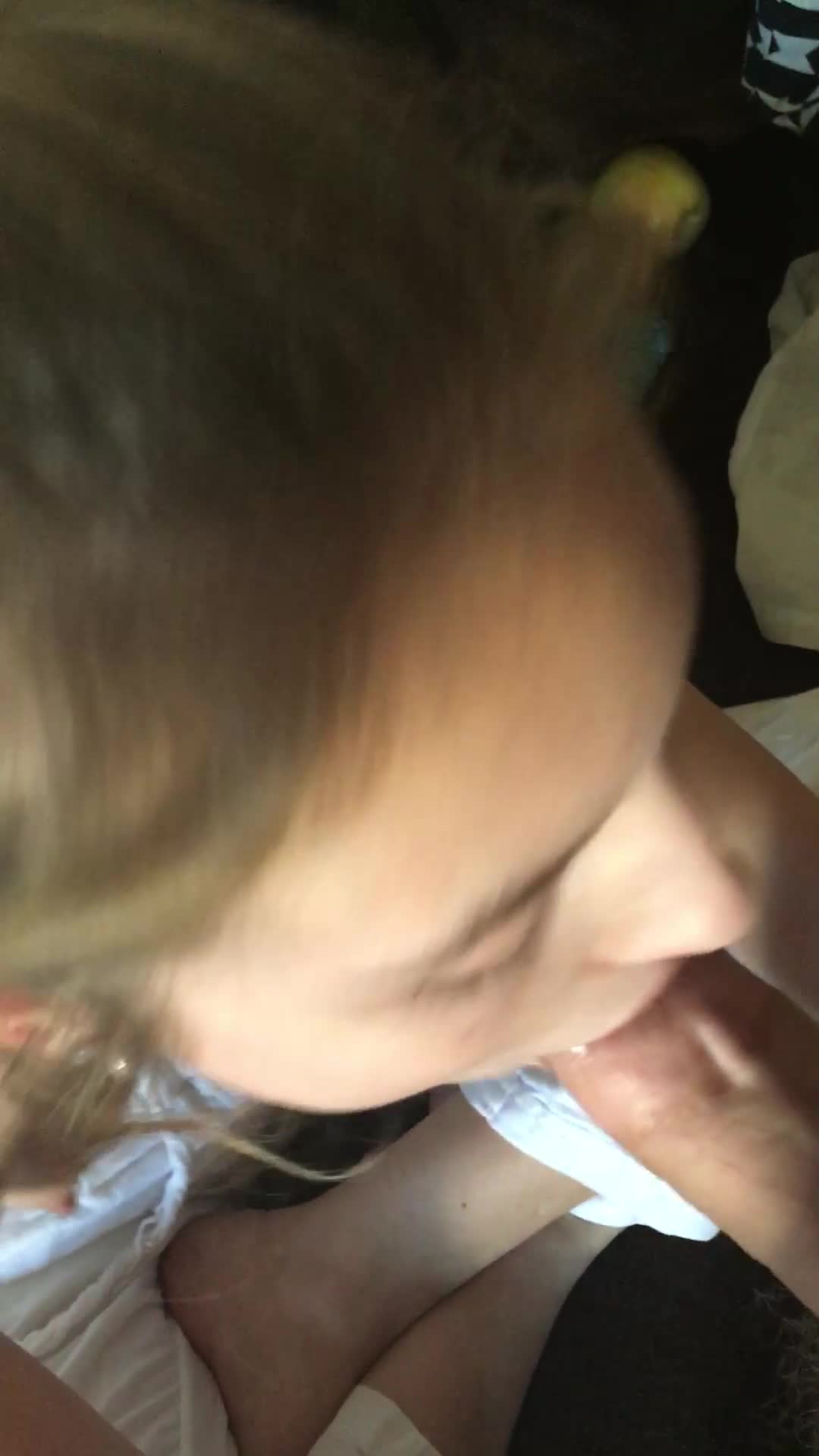 парень снимает на видео как она сосет его хуй