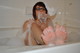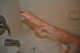 Девушка в очках замачивая свое тело в пенной ванне успешно похвасталась своим педикюром!