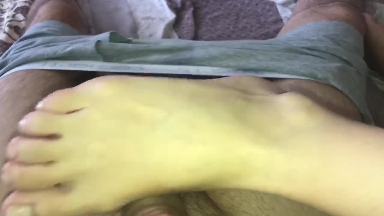Она явно кайфует когда Ваш член ножкой теребит!