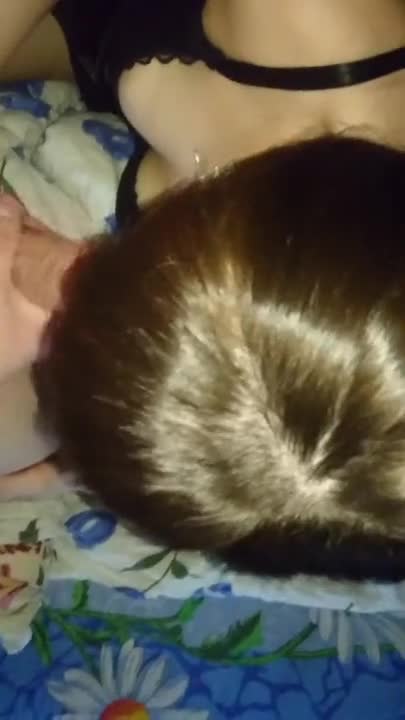 парочка занимается сексом на кроватке, он трахает её не снимая с неё ночнушки и кончает в ротик