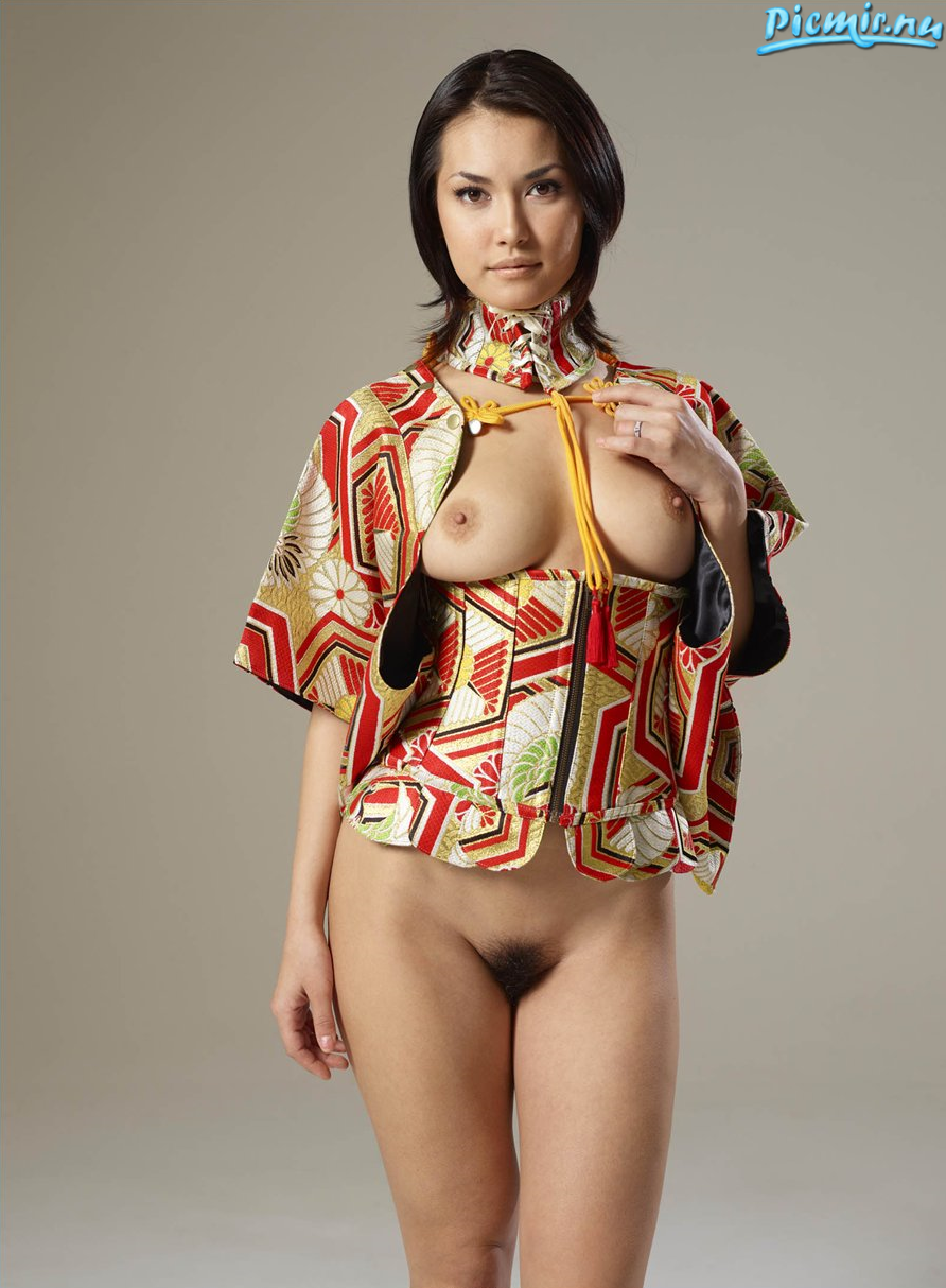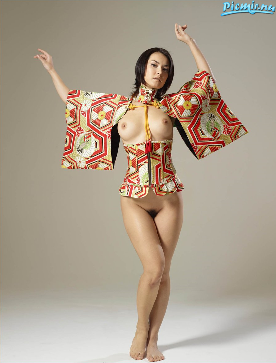 Девушка эффектно подчеркивает свою прелесть элементами похожими на кимоно