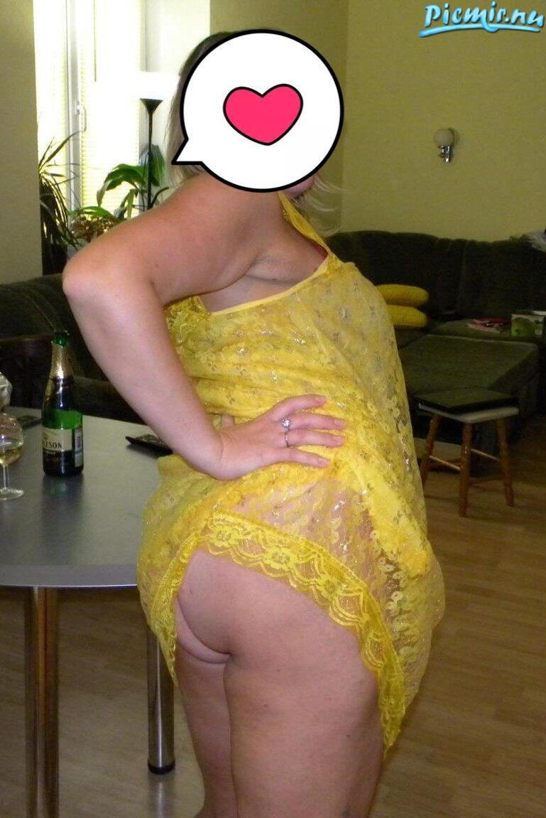 Дама аппетитной выглядит в своём жёлтом пеньюаре без трусов!