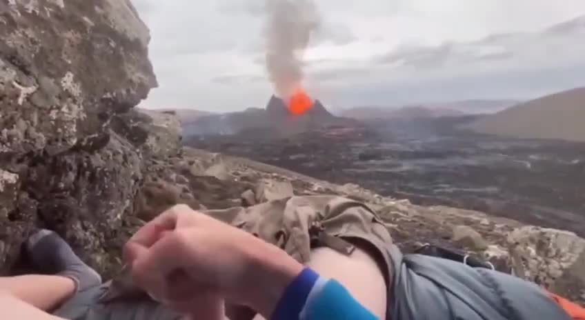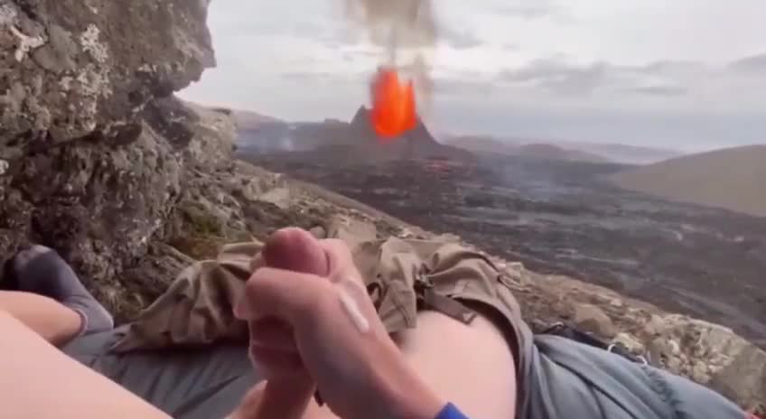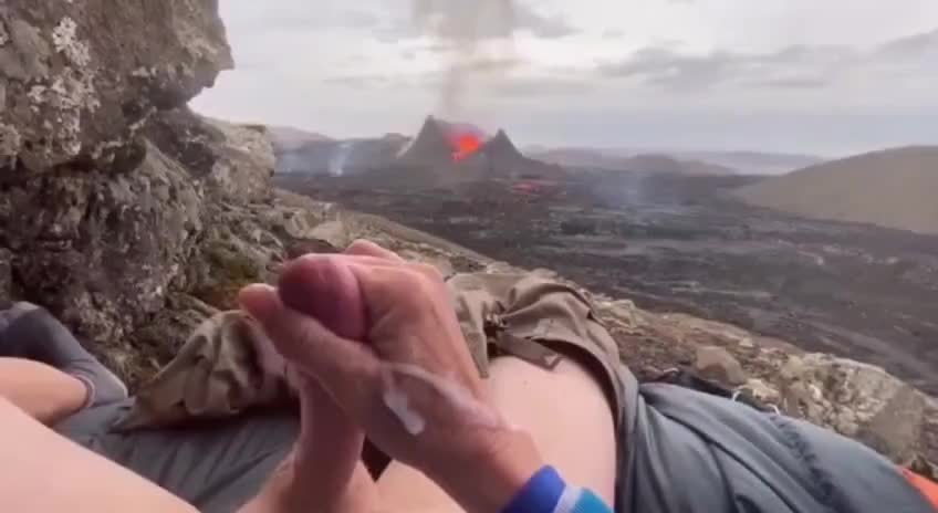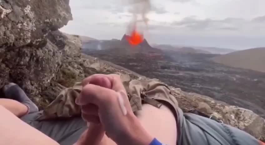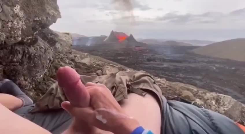 Мужик снимает на камеру как дрочит с видом на вулкан