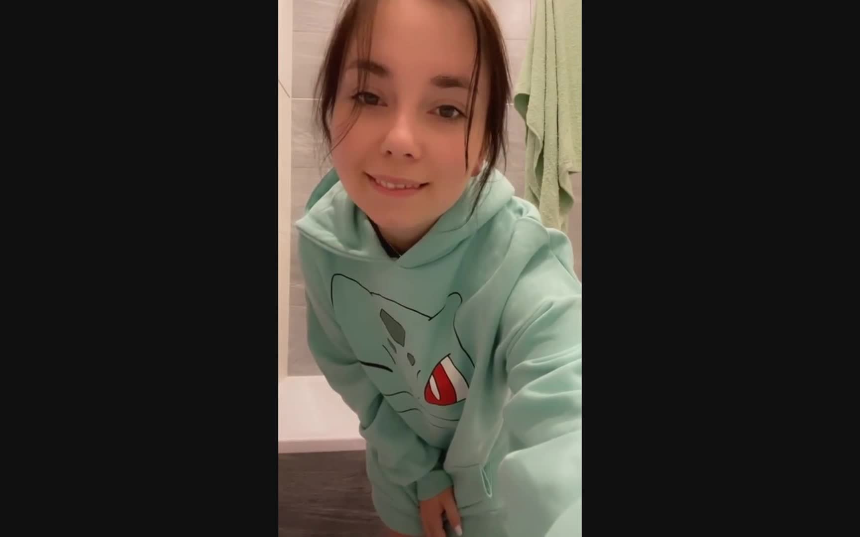 Молоденькая девушка с удовольствием показывает какие у неё выросли сисечки.
