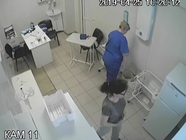 В процедурном кабинете медсестра берёт мазки из заднего прохода у женщин разного возраста не подозревающих,что всё снимается на скрытую камеру.